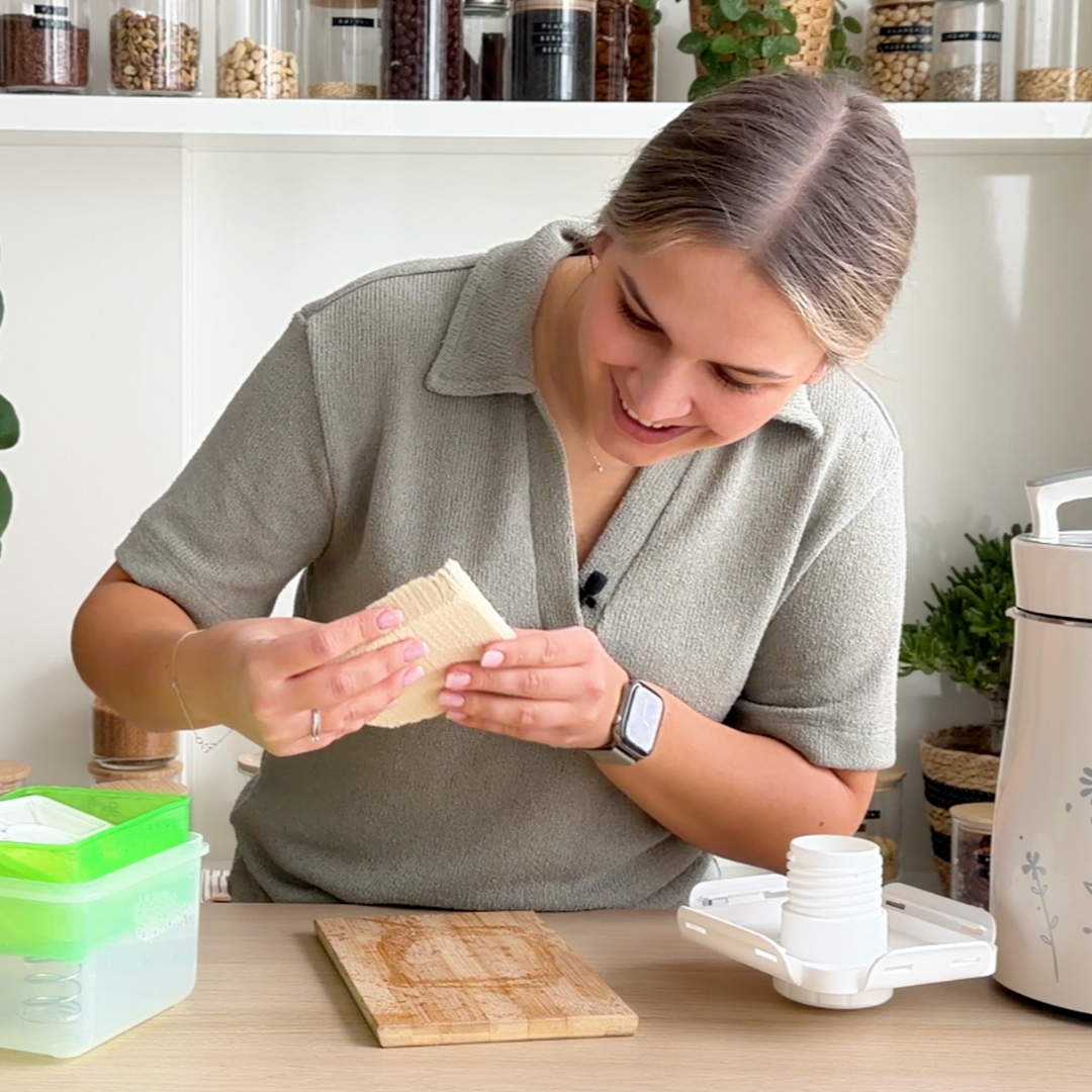 I will show you how to press your first block of tofu using the MioMat Basic strainer, so you can see if you like the tofu before getting a tofu press.